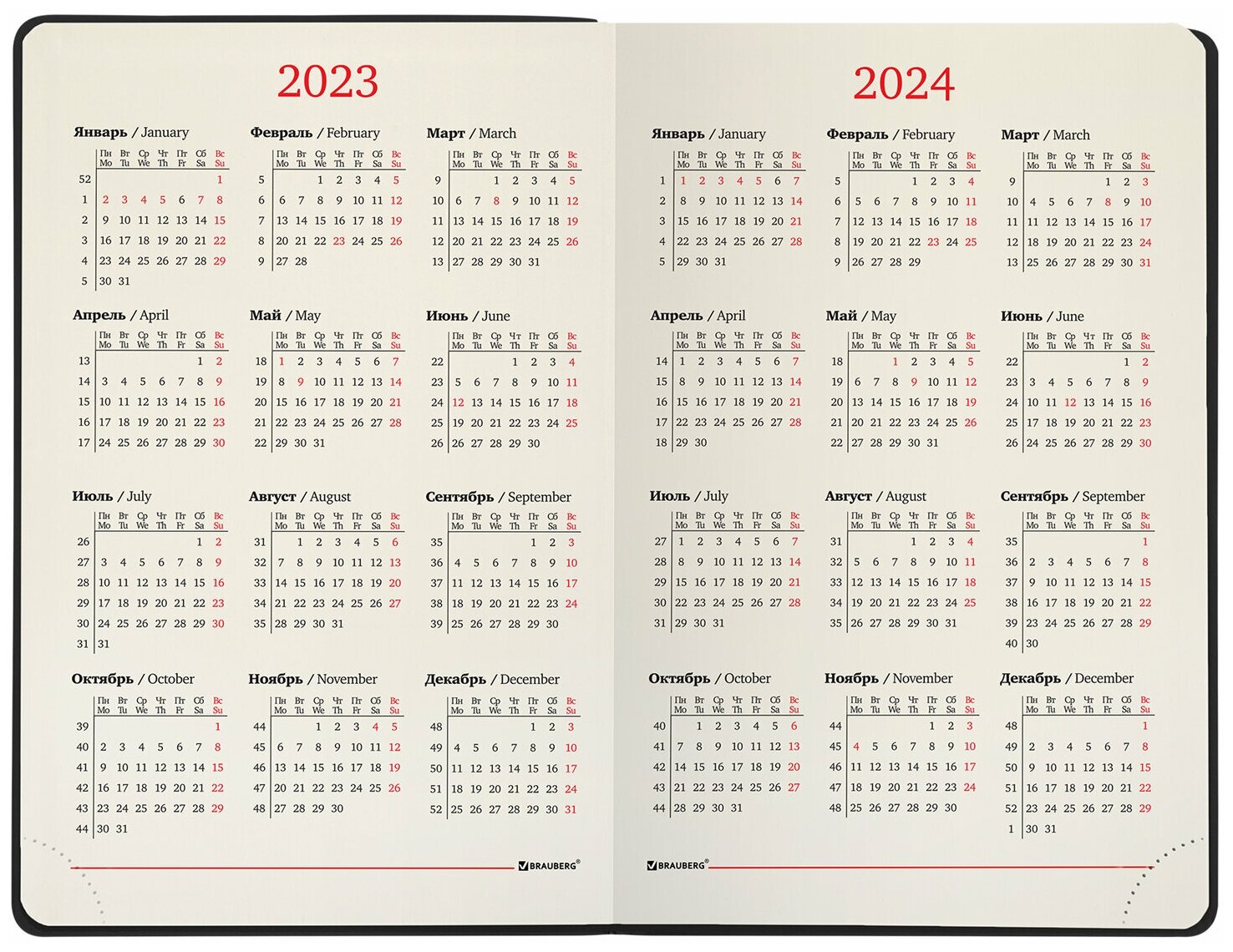| Особенности | календарь / перфорация уголков / справочная информация / ляссе / цветной обрез / закругленные углы |