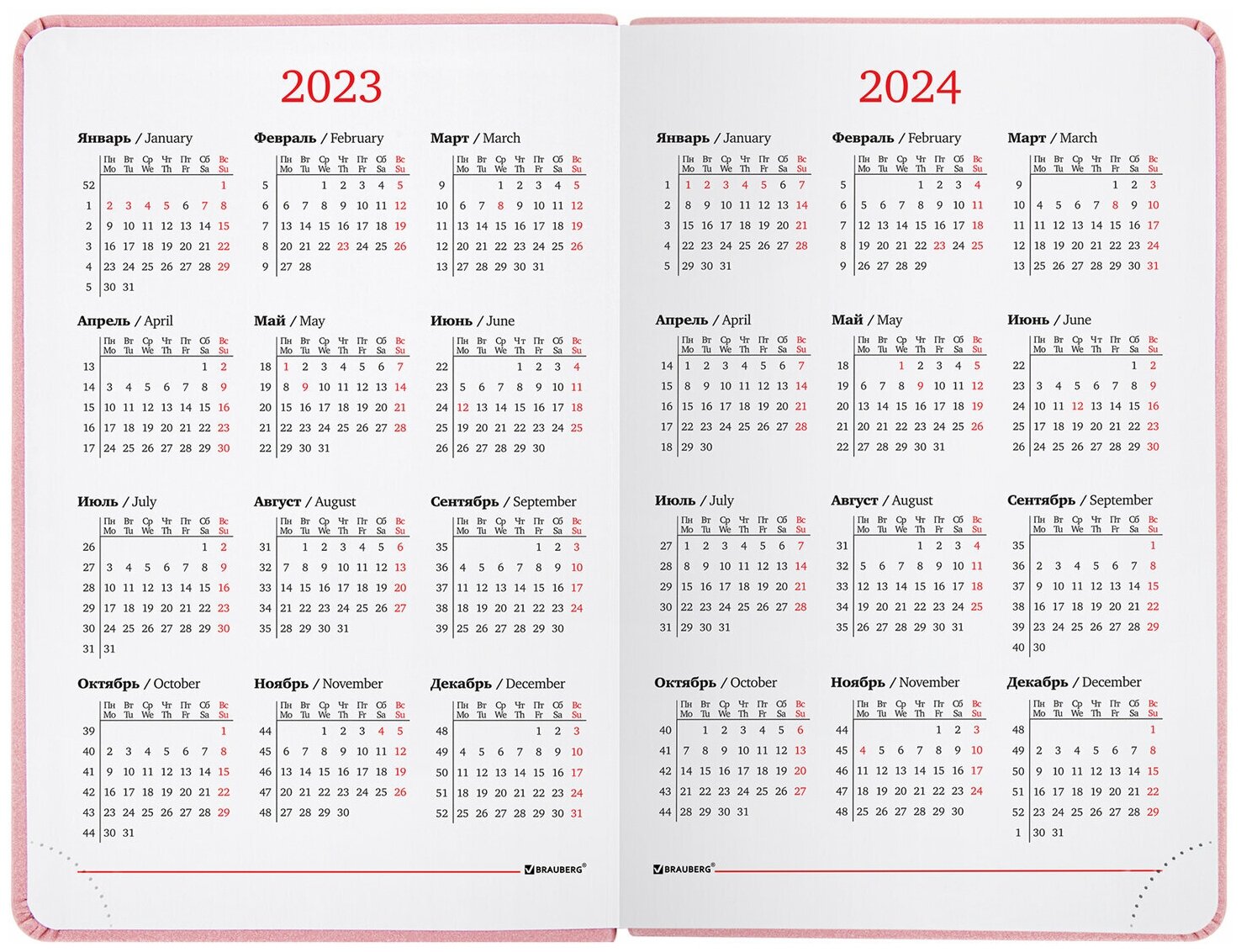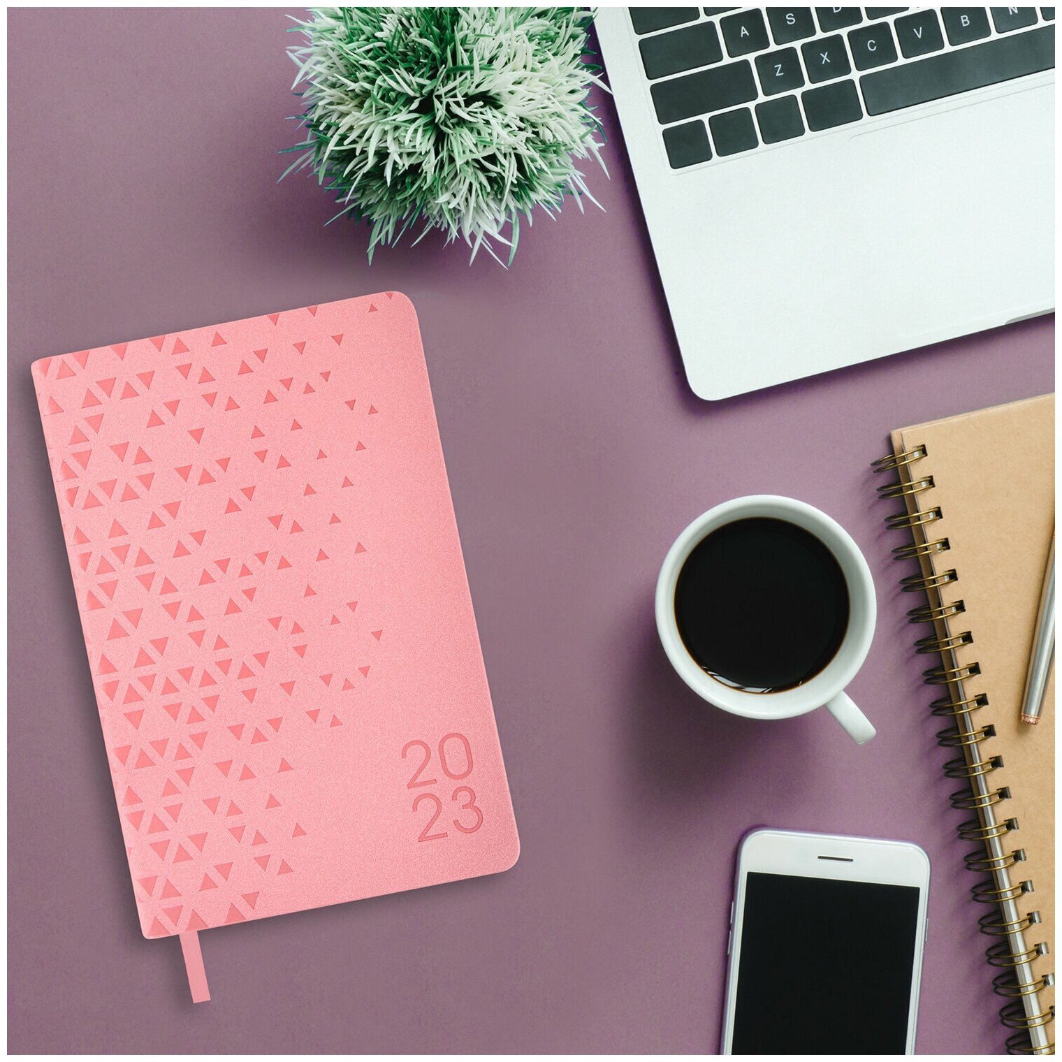 Ежедневник-планер (планинг) / записная книжка / блокнот датированный на 2023 год формата А5 (138x213 мм) Brauberg Glance, под кожу, розовый