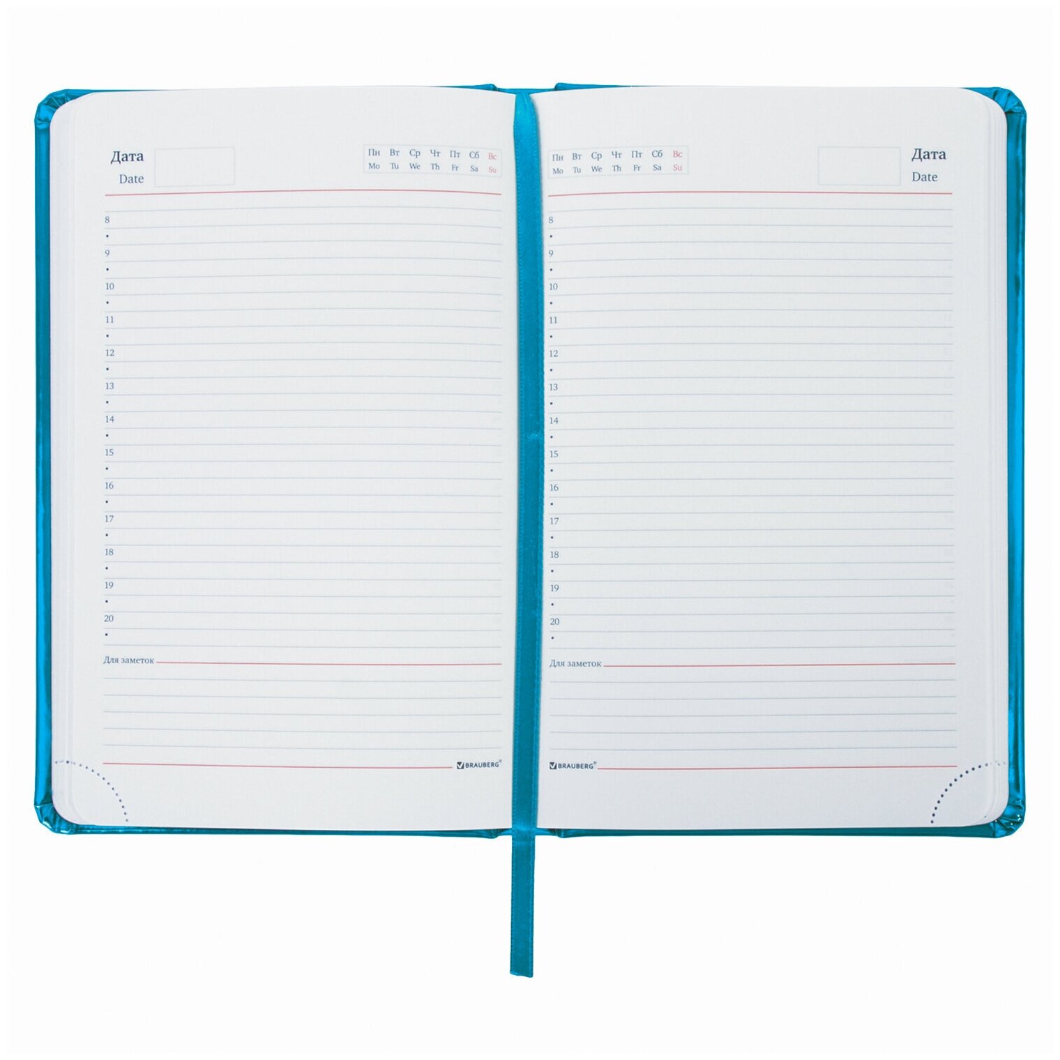 Ежедневник недатированный А5 (138x213 мм), BRAUBERG "Holiday", кожзам, 136 л., бирюзовый, 111866