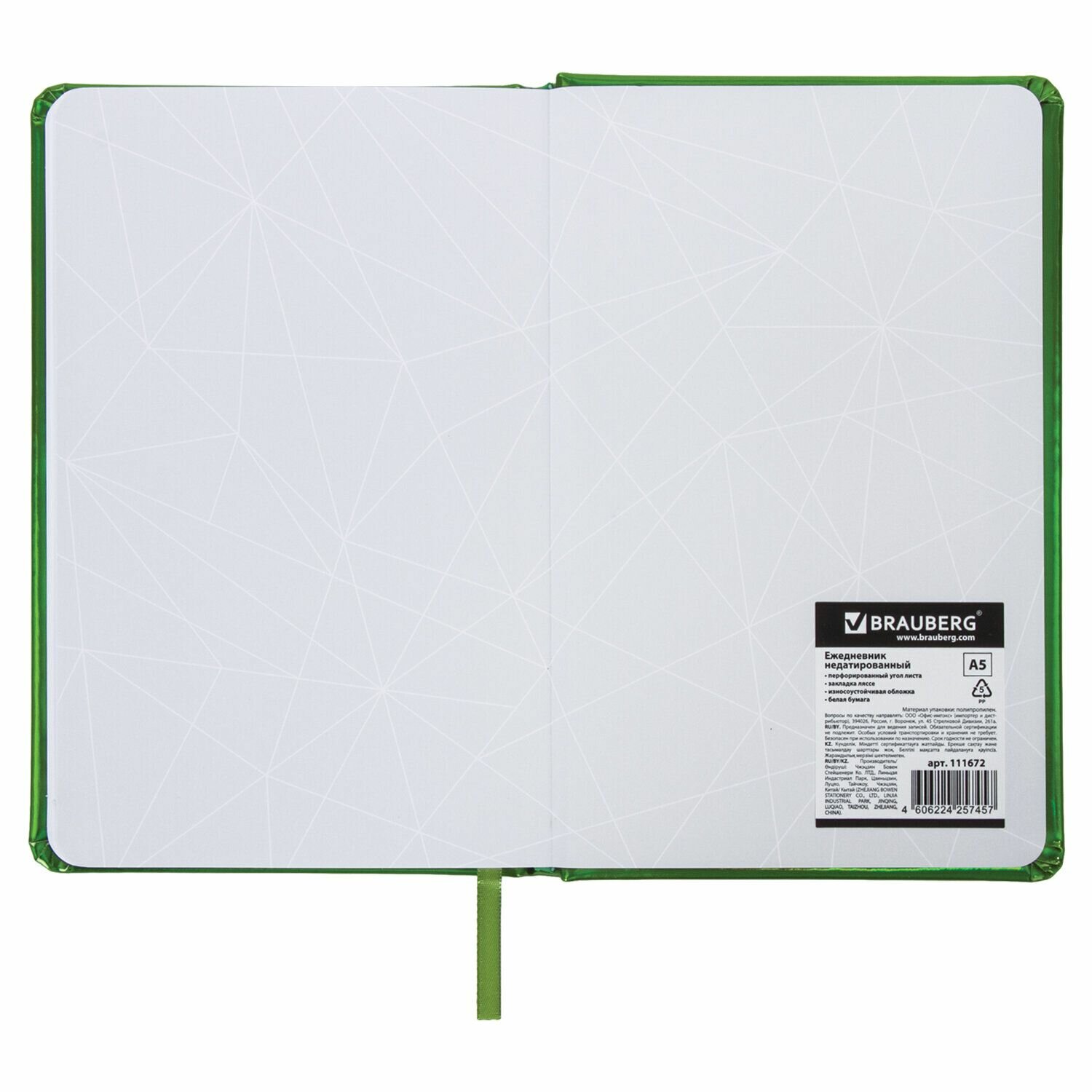 Ежедневник недатированный А5 (138x213 мм) BRAUBERG "Holiday", кожзам, 136 л., зеленый, 111672