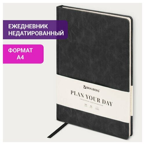 Ежедневник Brauberg Status, недатированный, 210х297 мм, А4, 160 л., черный