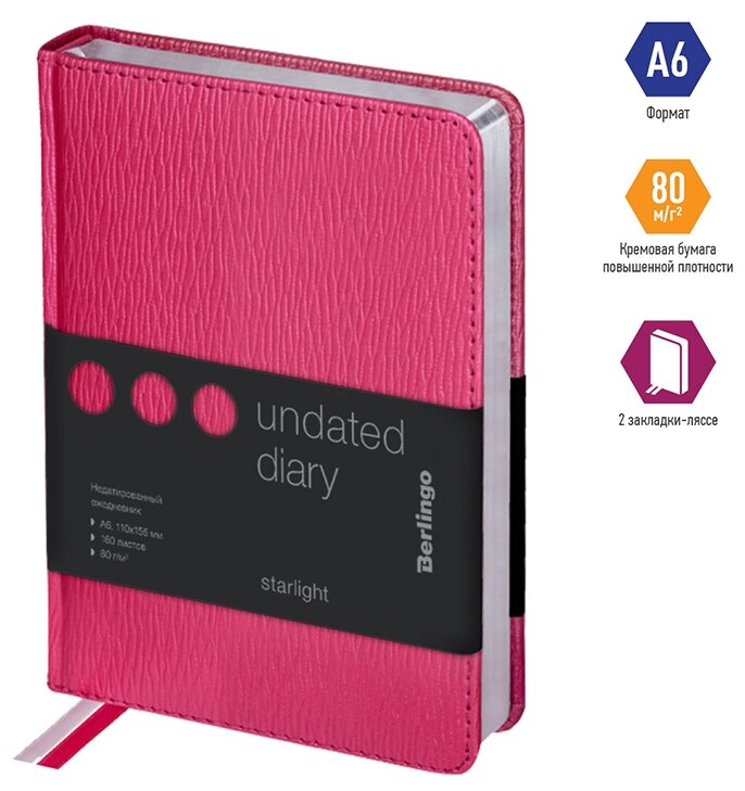 Купить Ежедневник недатированный А6 Berlingo Starlight (160 листов) обложка кожзам, фуксия, цв.срез (UD0_83604)