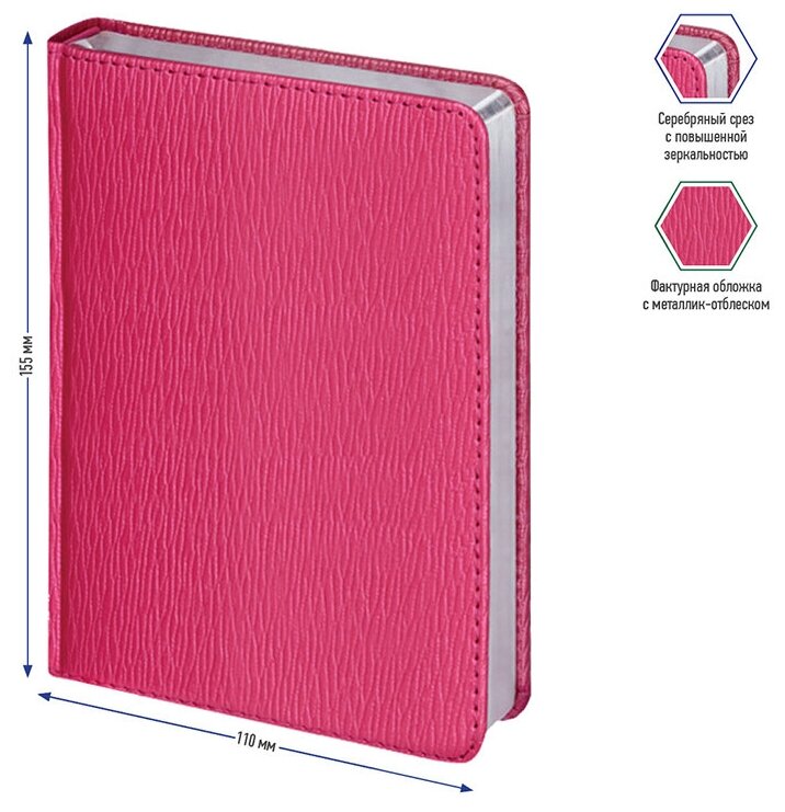Ежедневник недатированный A6, 160л., кожзам, Berlingo "Starlight", серебр. срез, фуксия