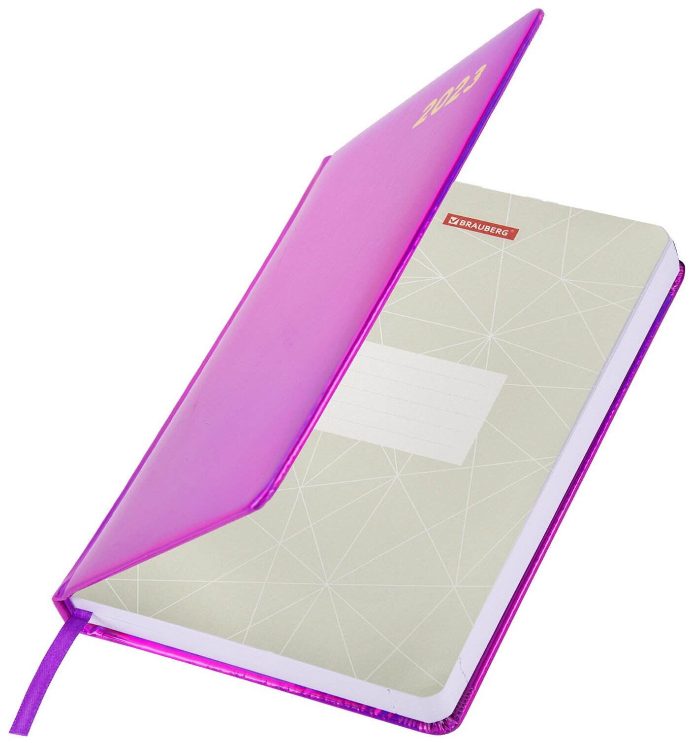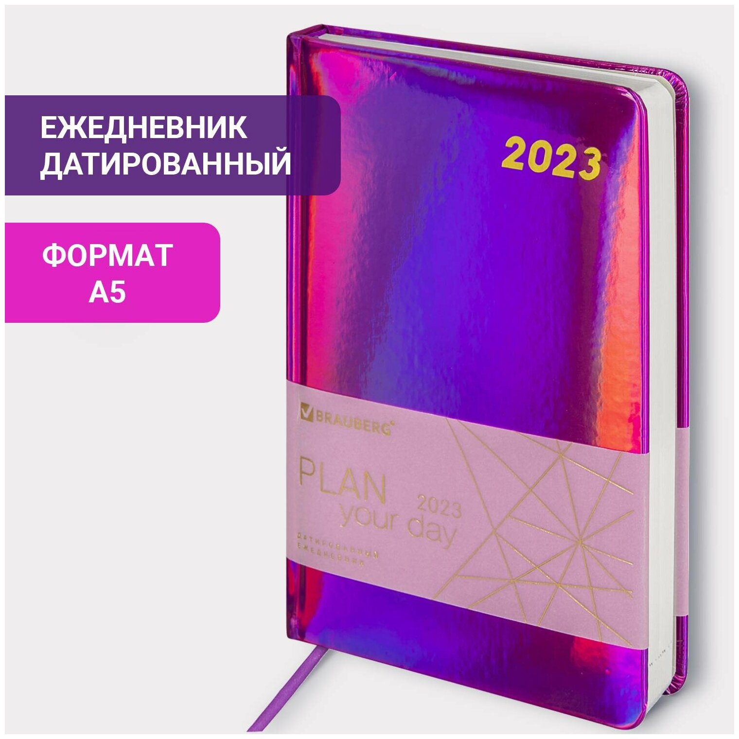 Ежедневник датированный BRAUBERG 2023 А5 138x213 мм "Holiday", под кожу, "зеркальный", фиолетовый, 114025