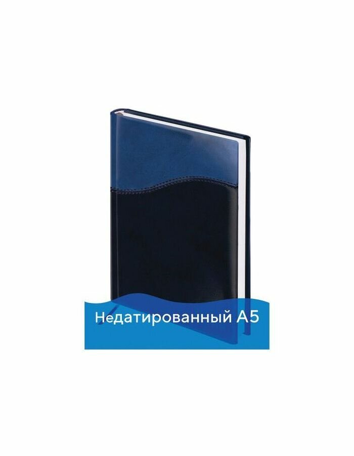 Ежедневник Brauberg недатированный А5 (138*213 мм) "Bond", под комбинированную кожу с волной, 160 листов, темно-синий/синий