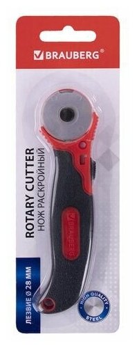 Нож раскройный роликовый 28 мм BRAUBERG, круглое лезвие, резиновые вставки, 238089 В комплекте: 1шт.
