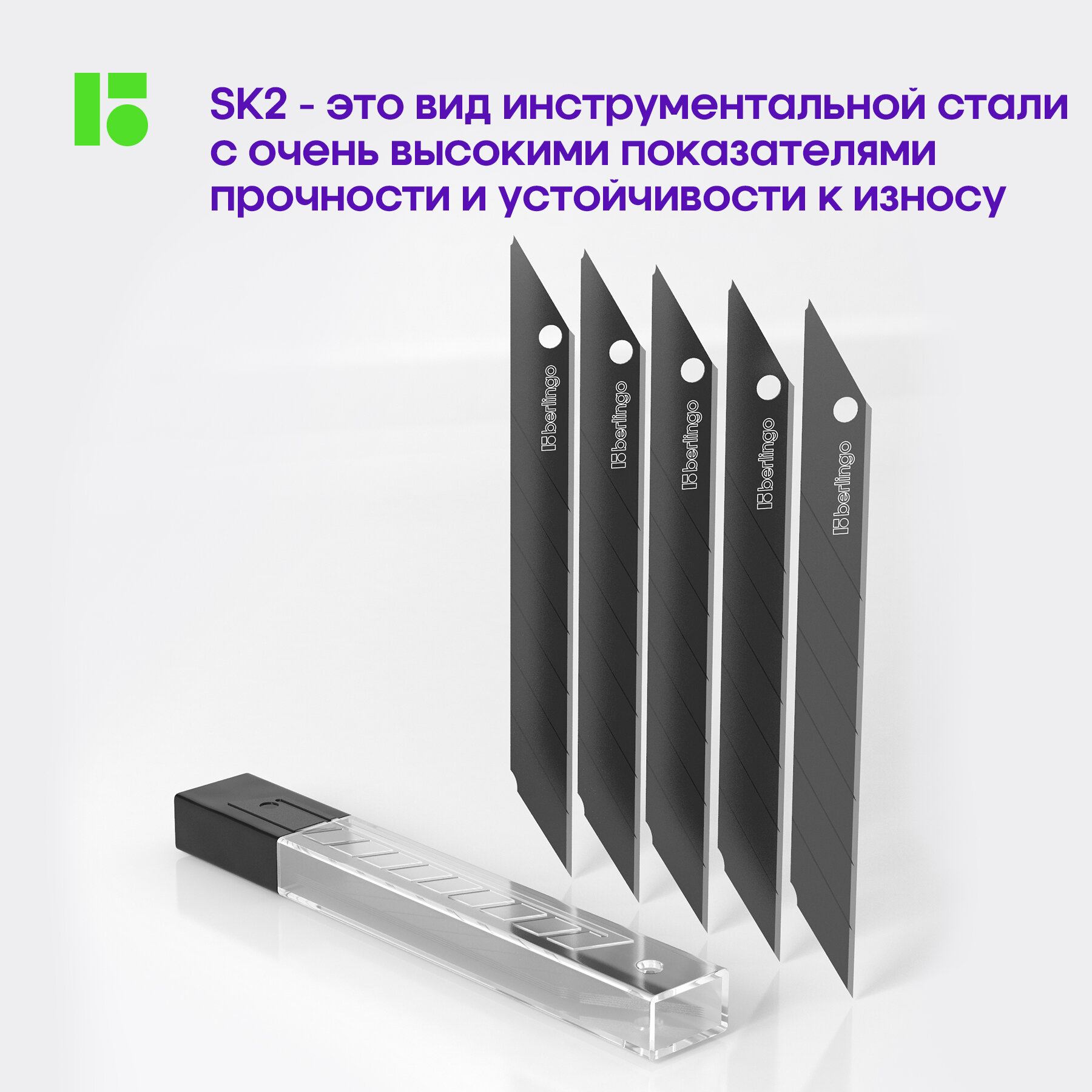 Лезвия для канцелярских ножей BERLINGO , 9мм, 5шт., черный цвет, блистер, европодвес