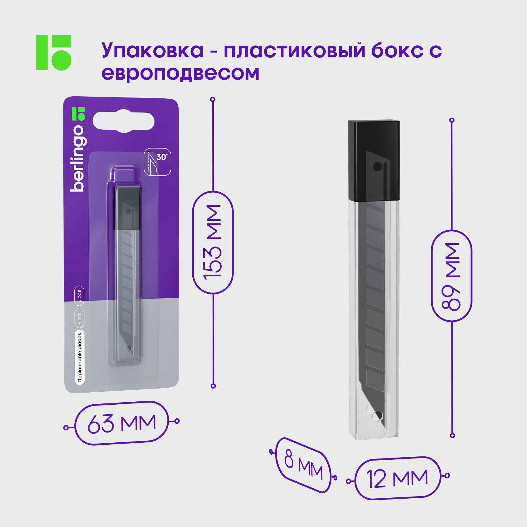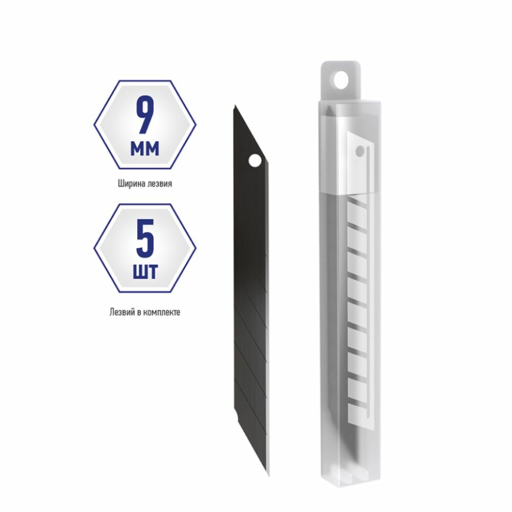 Лезвия для канцелярских ножей Berlingo, 9мм, 5шт., черный цвет, блистер, европодвес, 317424