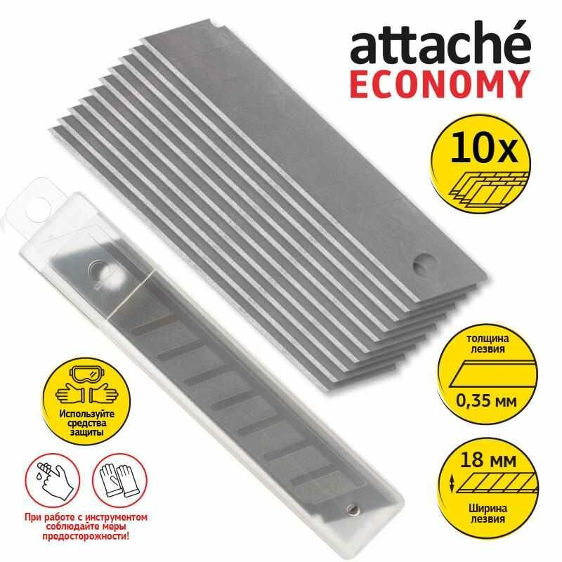 Лезвия для канцелярского ножа Attache, сегментированные, 18 мм, 10 штук в упаковке