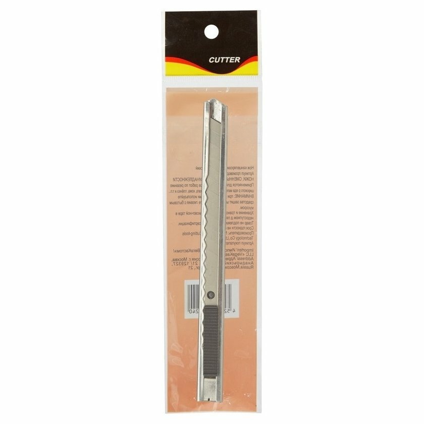 Нож канцелярский 9мм, фиксатор, металл, серебристый