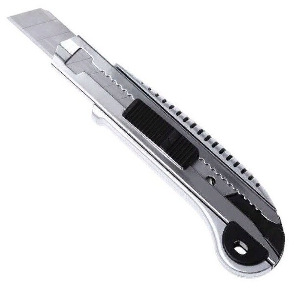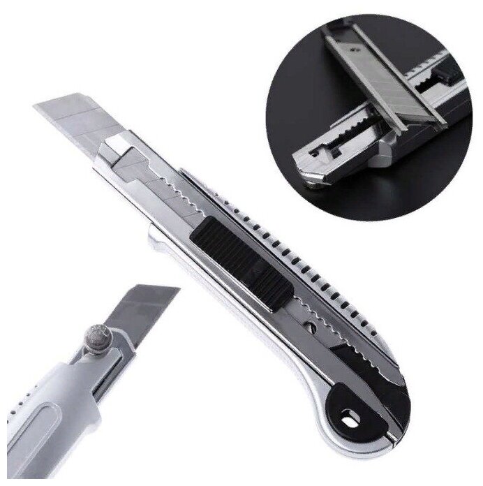 Канцелярский нож, 1 шт, серебристый, длина 15 см, ширина лезвия 18 мм, с 5 дополнительными лезвиями, выдвижной интересное: