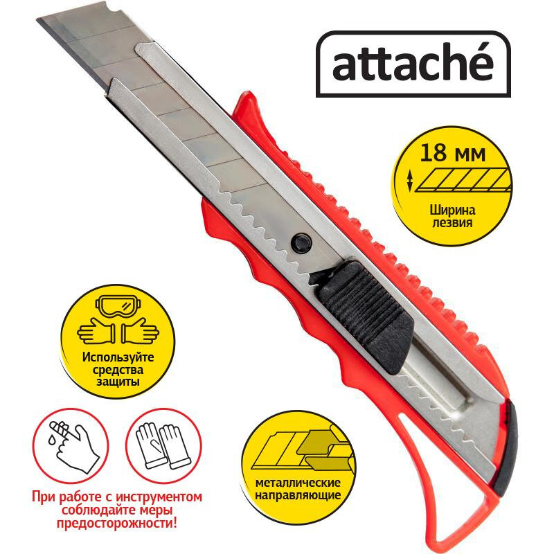 Нож канцелярский 18мм Attache с фиксатором и металлическими направляющими