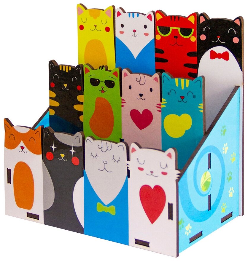 Органайзер для канцелярии деревянный Коты / Подставка канцелярская / Карандашница /Держатель канцелярский интересное: