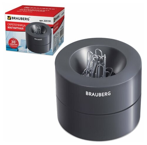 Купить Скрепочница магнитная с 30 скрепками, большой бочонок, чёрная Brauberg 1930116 .