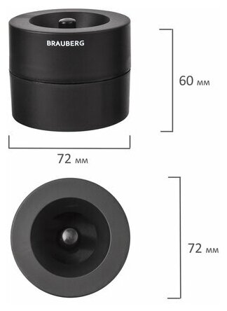 Brauberg Скрепочница магнитная с 30 скрепками, большой бочонок, чёрная