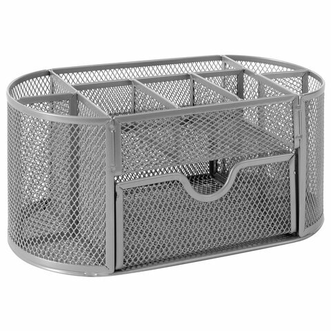 Купить Подставка-органайзер металлическая BRAUBERG, 9 секций, 105×220х110 мм, серебро