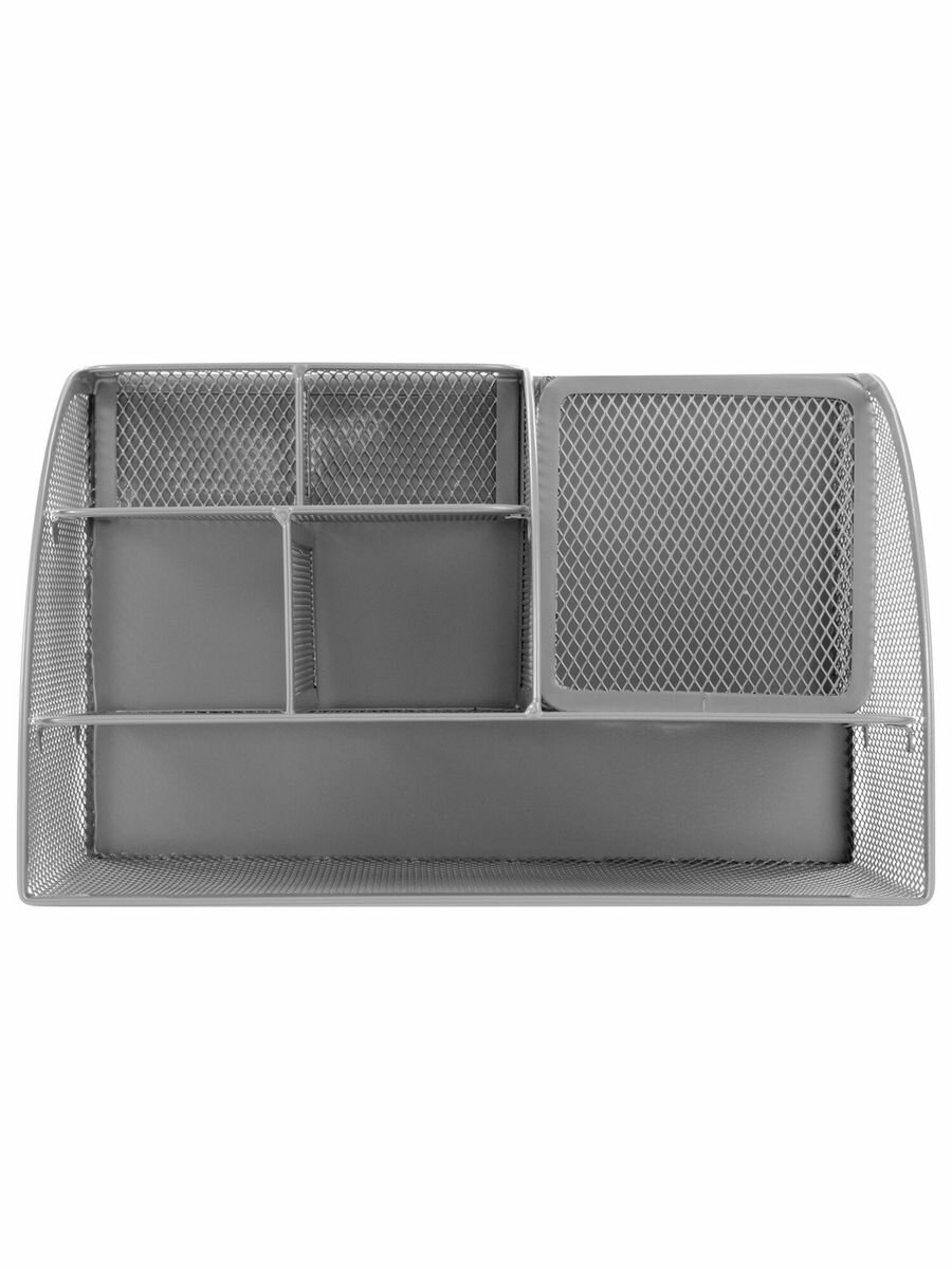 Органайзер для канцелярии настольный школьный большой, подставка для ручек и карандашей в офис, 5 отделений, металл, 255х180х105 мм, Brauberg Germanium, 237974