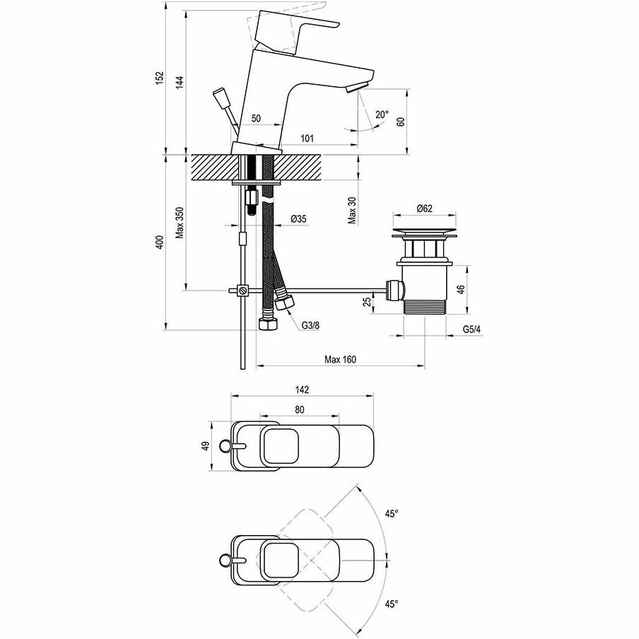 | Дополнительная информация | диаметр картриджа 35 мм; соединительные шланги: гибкий 400 мм, диаметр G3/8; открывание стока: с тросиком и сточным комплектом; гарантия на смесители: 5 лет |
