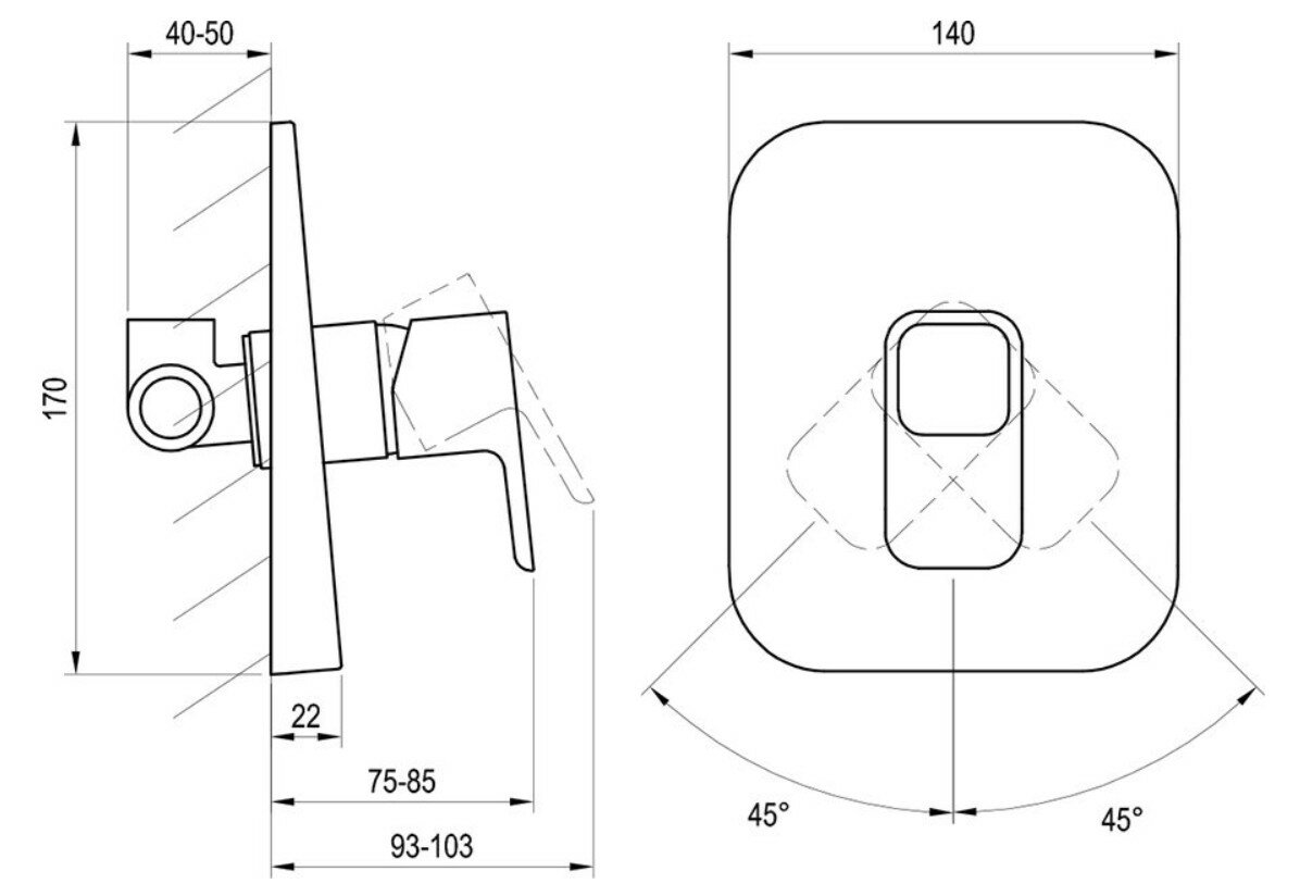 Смеситель для душа RAVAK 10° TD 062.00 встраиваемый, в комплекте со скрытой частью
