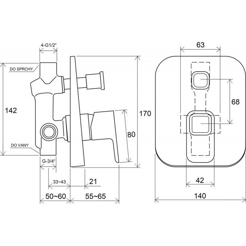 Смеситель скрытого монтажа (встраиваемый) Ravak 10 градусов TD 061.00 с переключателем X070068
