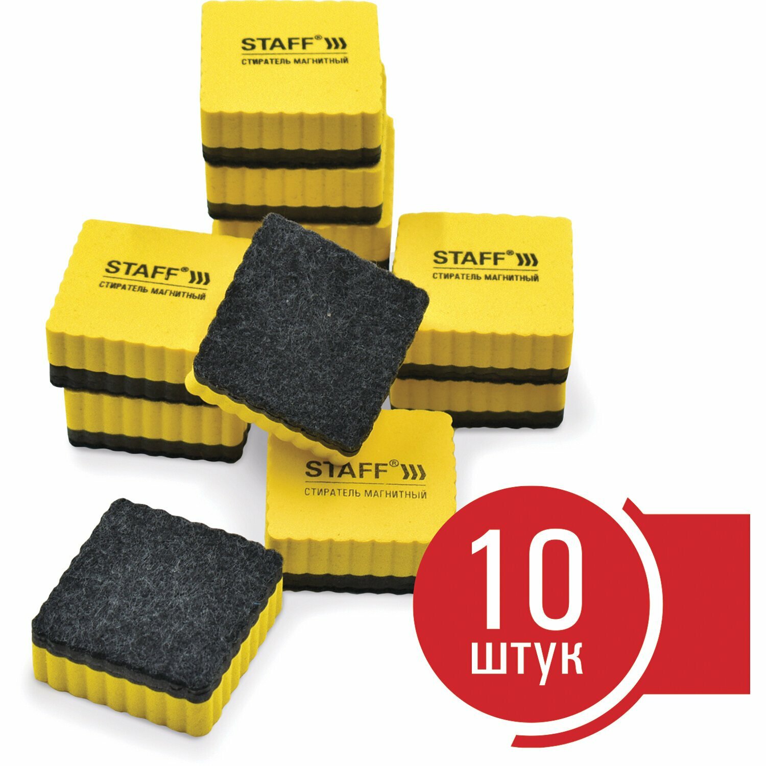 Стиратели магнитные для магнитно-маркерной доски, 50х50 мм, комплект 10 ШТ., STAFF Basic, желтые, 237505 Комплект : 1 шт .