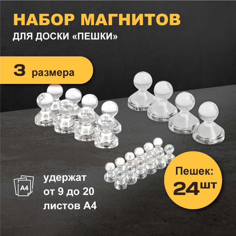Набор прозрачных неодимовых магнитов для магнитно маркерной доски Пешка в боксе, 24 шт, Forceberg интересное: