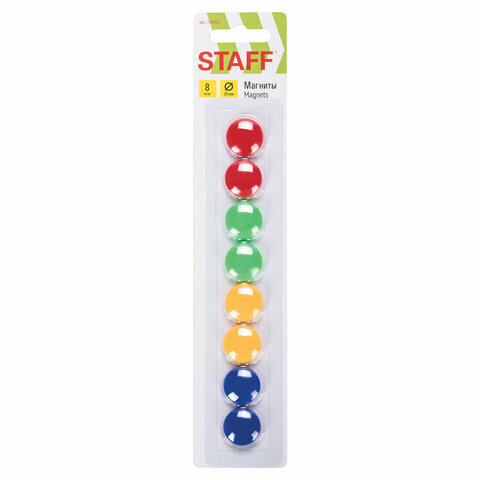 Магниты STAFF, диаметр 20 мм, 8 шт., цвета ассорти, в блистере, 236403