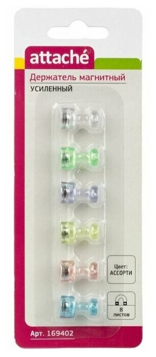 Магнитный держатель Attache усиленный, цветной, 6 штук (169402)