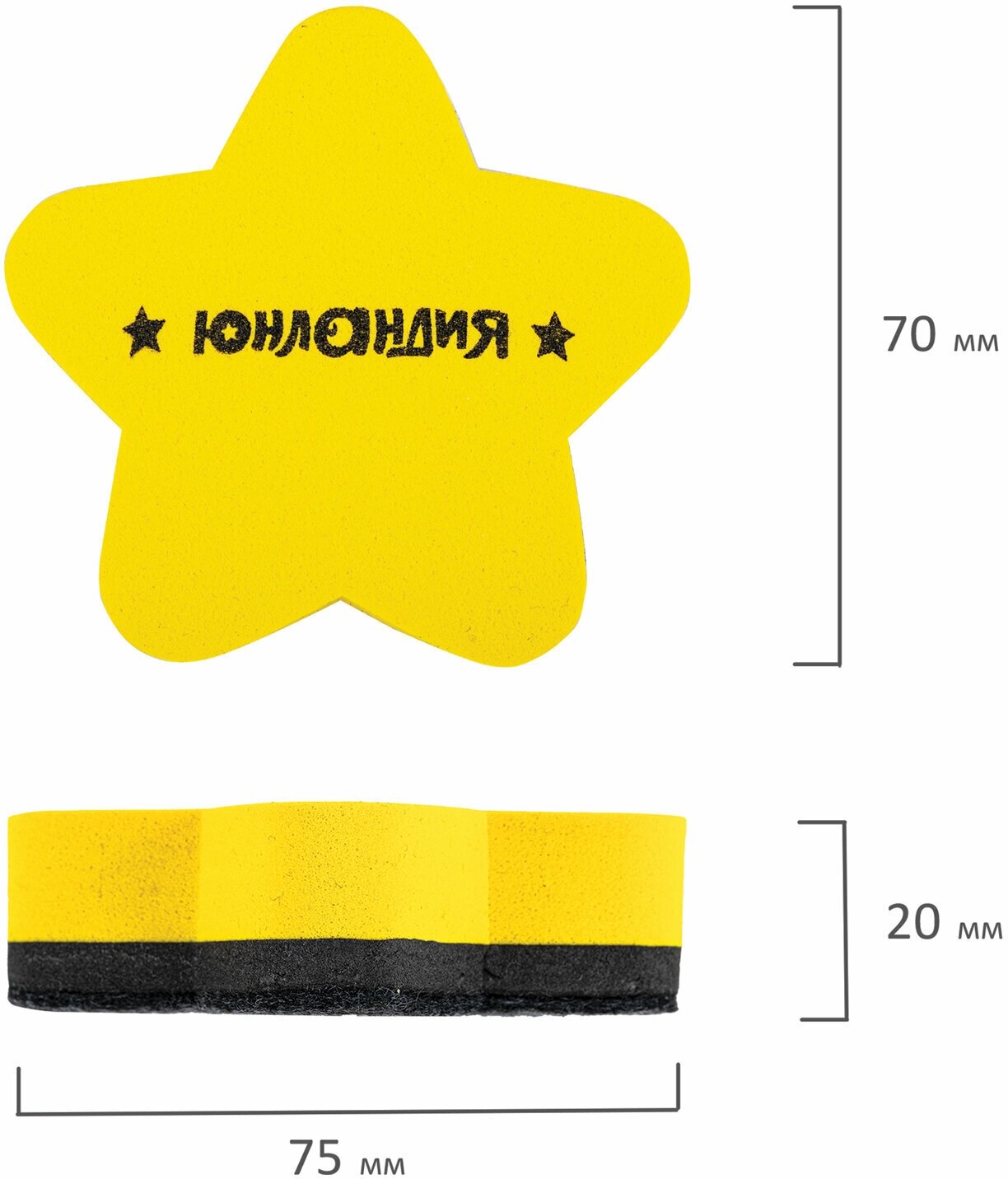 Стиратели магнитные юнландия для магнитно-маркерной доски, 75 мм, "Звезда", комплект 5 ШТ., , желтые
