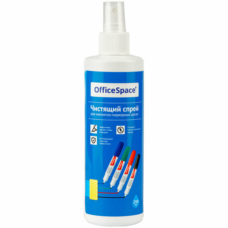 Чистящая жидкость-спрей OfficeSpace "Pro", для маркерных досок, перманентных маркеров, усиленная формула, 250 мл (307368)