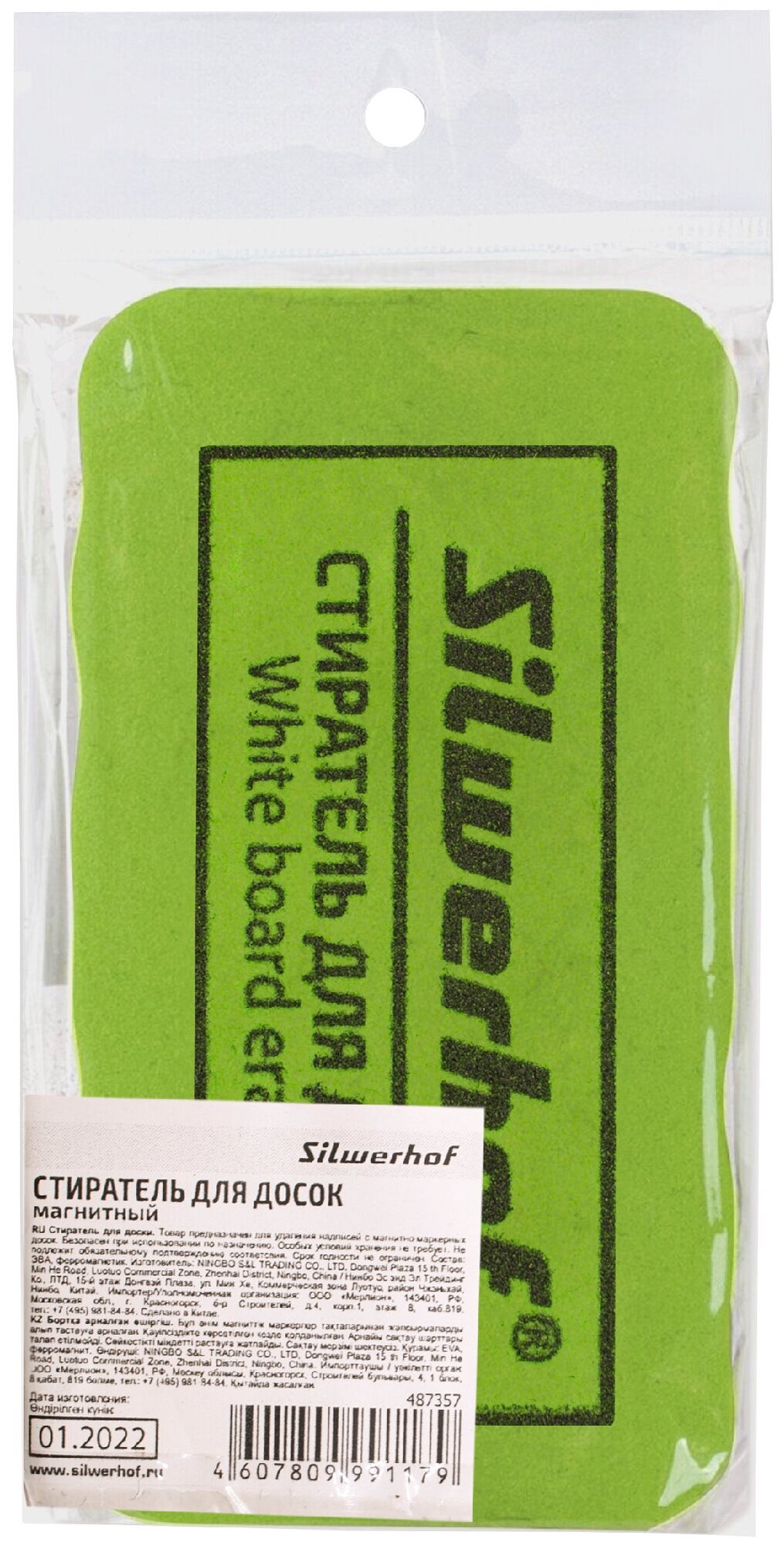 Стиратель Silwerhof 659004-02 для досок фетр 10.7x5.7x2см зеленый магнитный интересное: