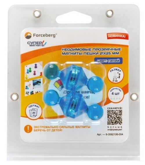 Неодимовый прозрачный магнит для магнитной доски Пешка Forceberg 21х25 мм, синий, 4 шт интересное: