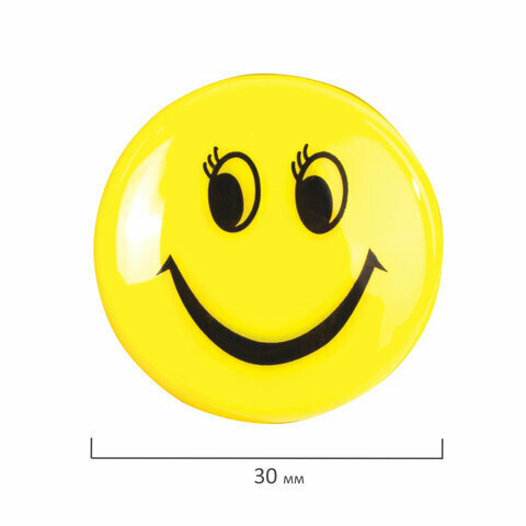 Магниты среднего диаметра, 30 мм, набор 5 штук, с рисунком смайлик, жёлтые, в блистере, STAFF "Basic", 237483 В комплекте: 3шт.