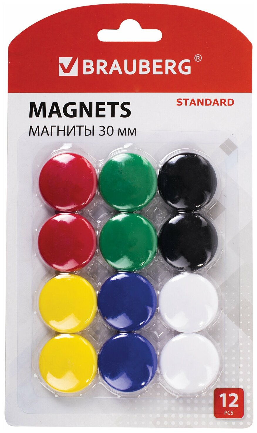 Магниты BRAUBERG «STANDARD», набор 20 мм — 2 шт., 30 мм — 2 шт., 40 мм — 2 шт., серые, BRAUBERG, 237473 /Квант продажи 1 ед./