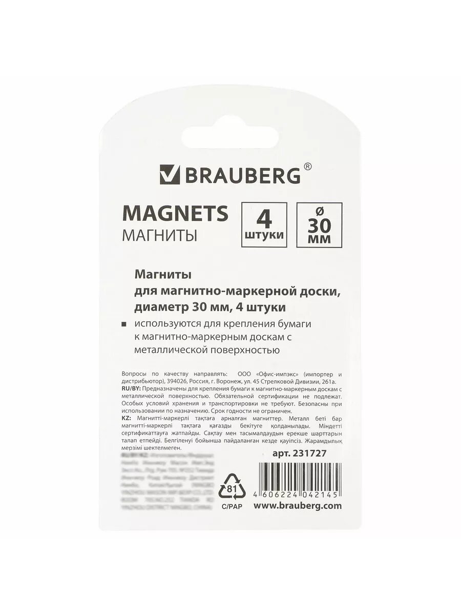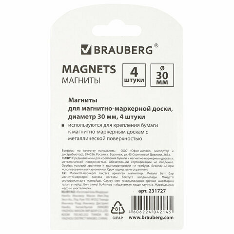 Brauberg Магниты диаметр 30 мм, 4 шт., смайлики, 231727