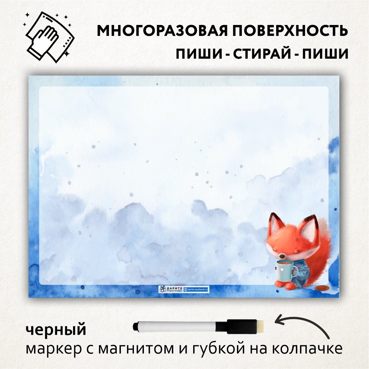 Магнитная доска А3, планер (планинг) магнитный на холодильник, магнит для заметок многоразовый, маркер с магнитом, Лисёнок №7, magnetic_board_fox_А3_7 интересное: