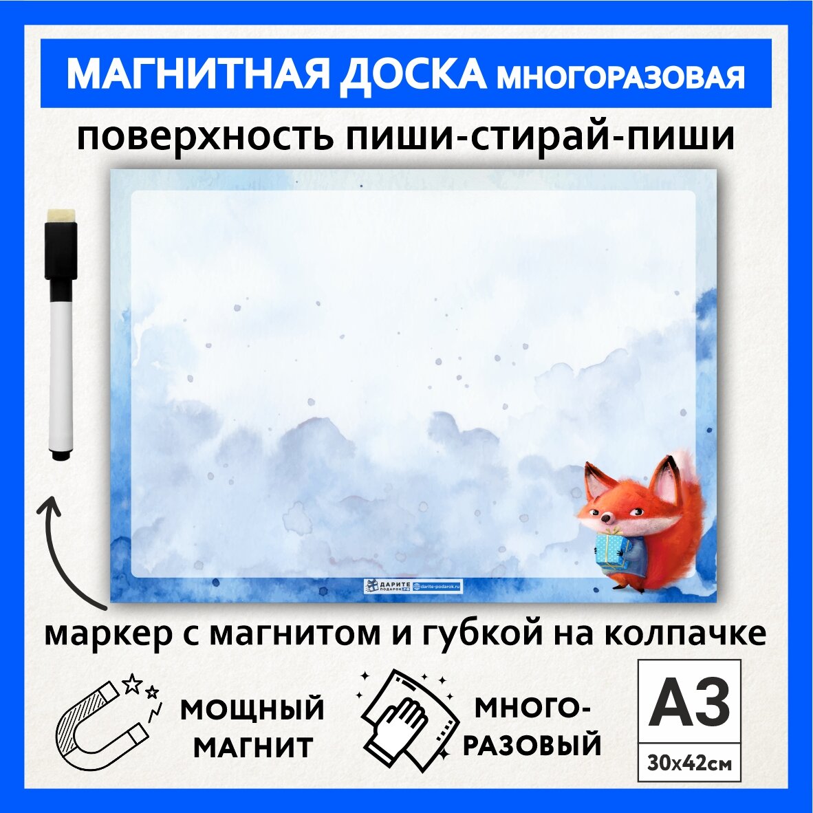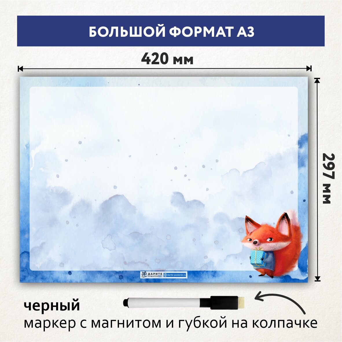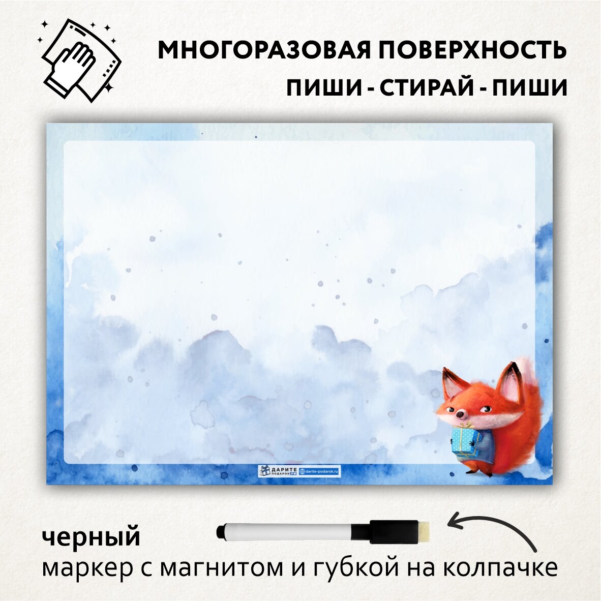 Магнитная доска А3, планер (планинг) магнитный на холодильник, магнит для заметок многоразовый, маркер с магнитом, Лисёнок №3, magnetic_board_fox_А3_3 интересное: