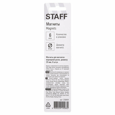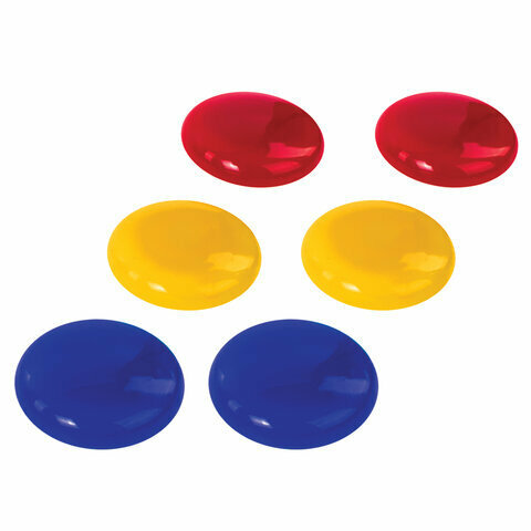 Магниты малого диаметра, комплект 6 шт., 20 мм, цвет ассорти, в блистере, STAFF "Basic", 236404