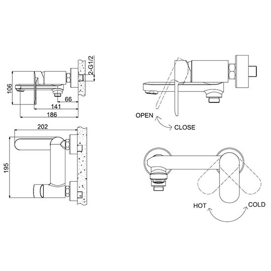 | Длина излива | 186 мм |