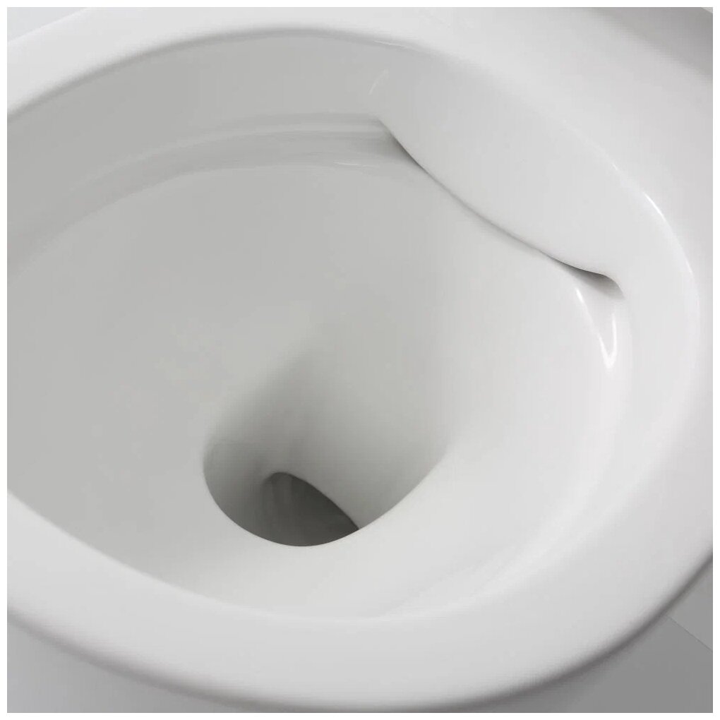 | Плюсы: | Из приятных функций есть антивсплеск и безободковый смыв. Большой плюс для хозяек - это то, что убирать его очень просто, ведь здесь нет никакого ободка и грязь под ним не копится. |