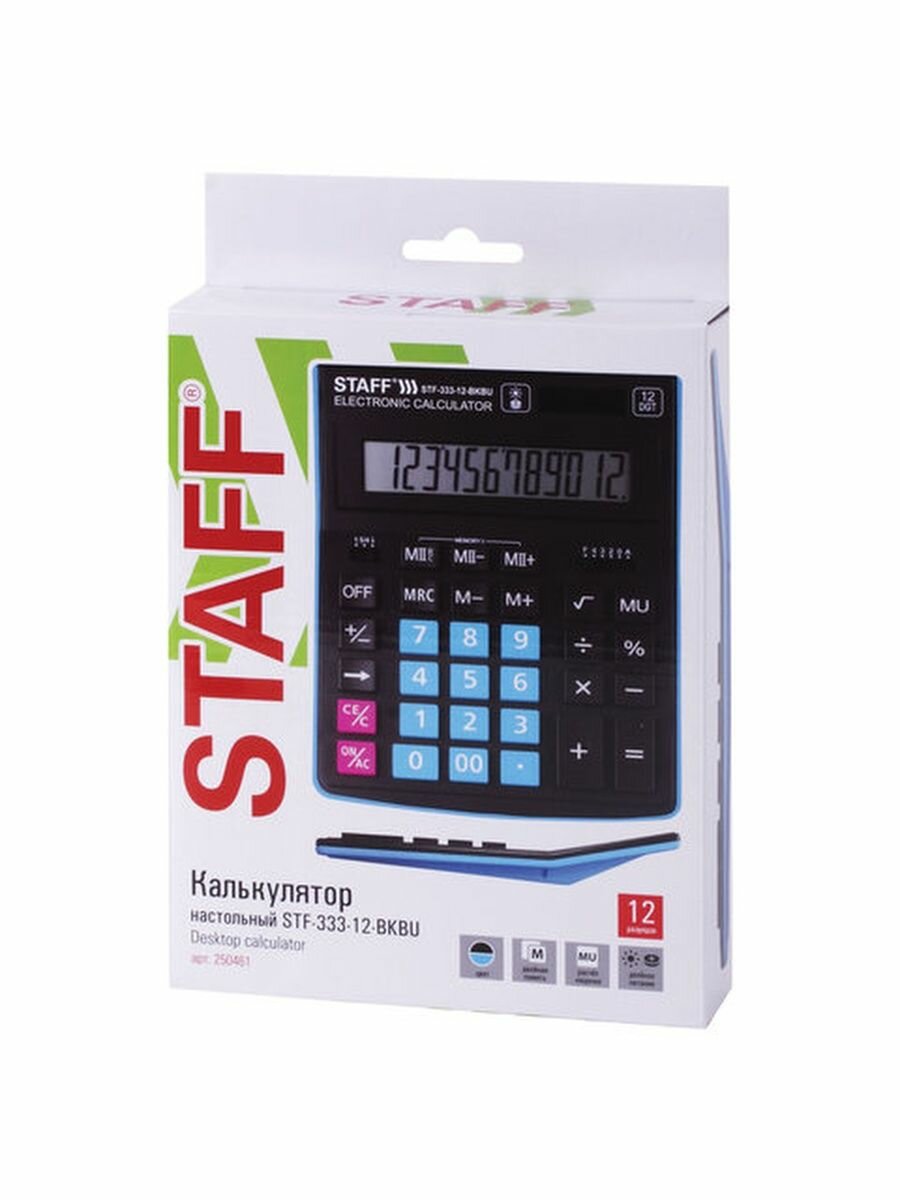 Купить Калькулятор настольный STAFF PLUS STF-333-BKBU ( 200x154 мм) 12 разрядов, черно-синий, 250461