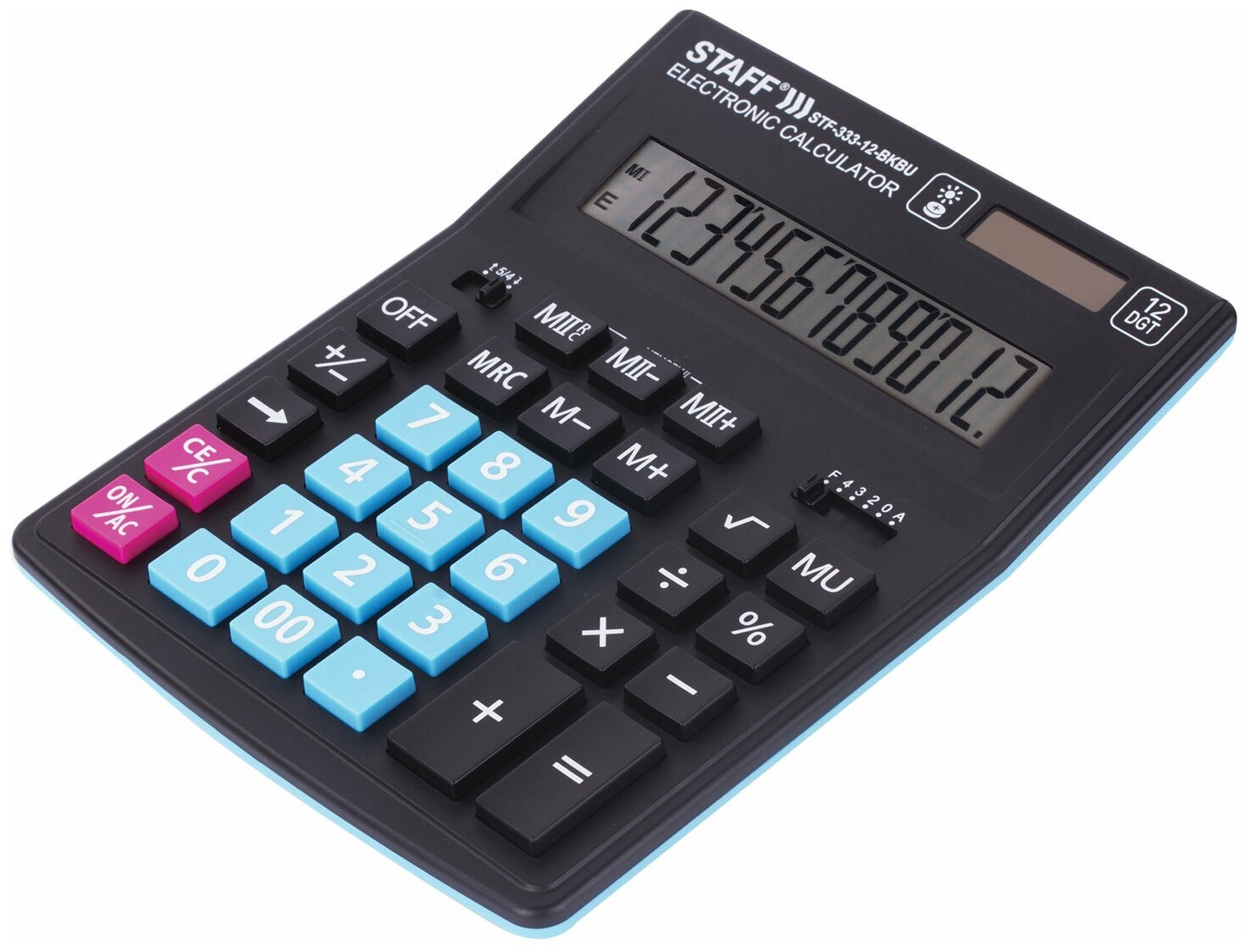 Калькулятор настольный STAFF PLUS STF-333-BKBU ( 200×154 мм) 12 разрядов, черно-синий, 250461