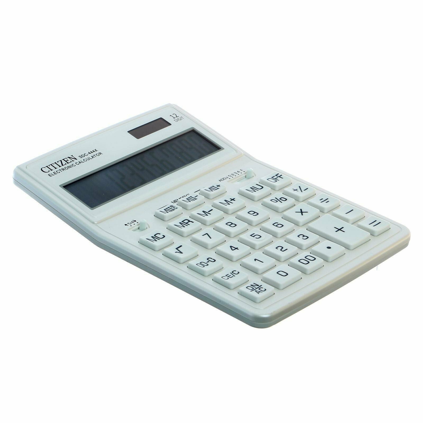 Купить Калькулятор настольный Citizen SDC-444XRWHE, 12 разрядов, двойное питание, 155×204×33мм, белый
