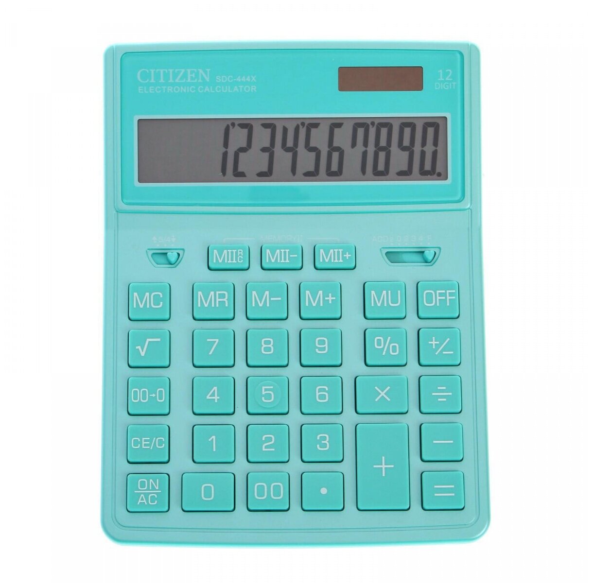 Калькулятор настольный Citizen SDC-444XRGNE, 12 разрядов, двойное питание, 155×204×33мм, бирюзовый