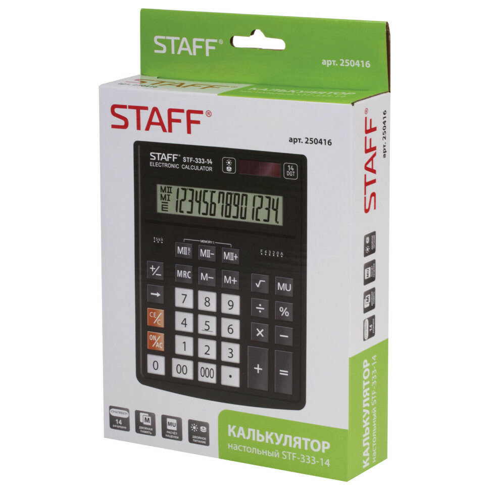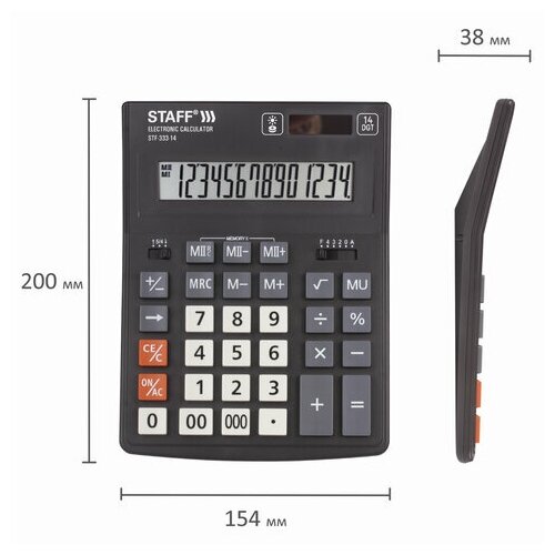 Калькулятор настольный STAFF PLUS STF-333 (200x154 мм), 14 разрядов, двойное питание, 250416 интересное: