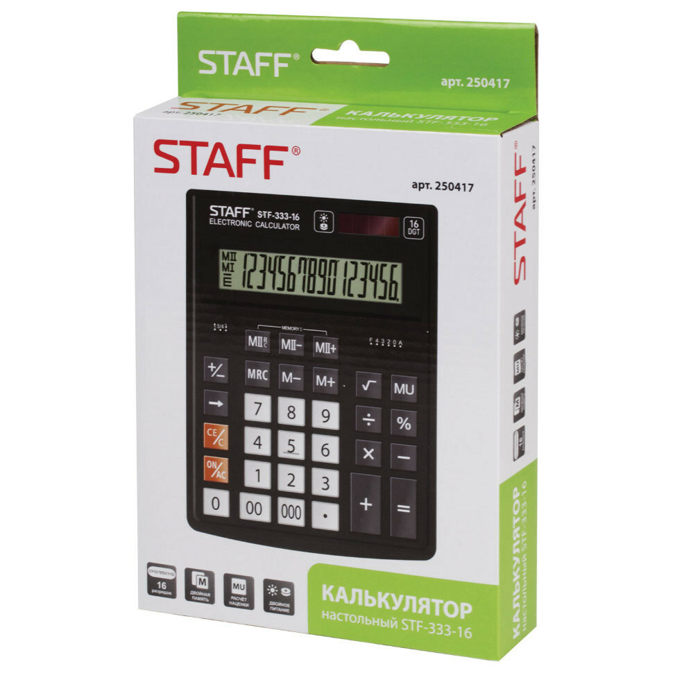 Калькулятор настольный STAFF PLUS STF-333 (200x154 мм), 16 разрядов, двойное питание, 250417 интересное: