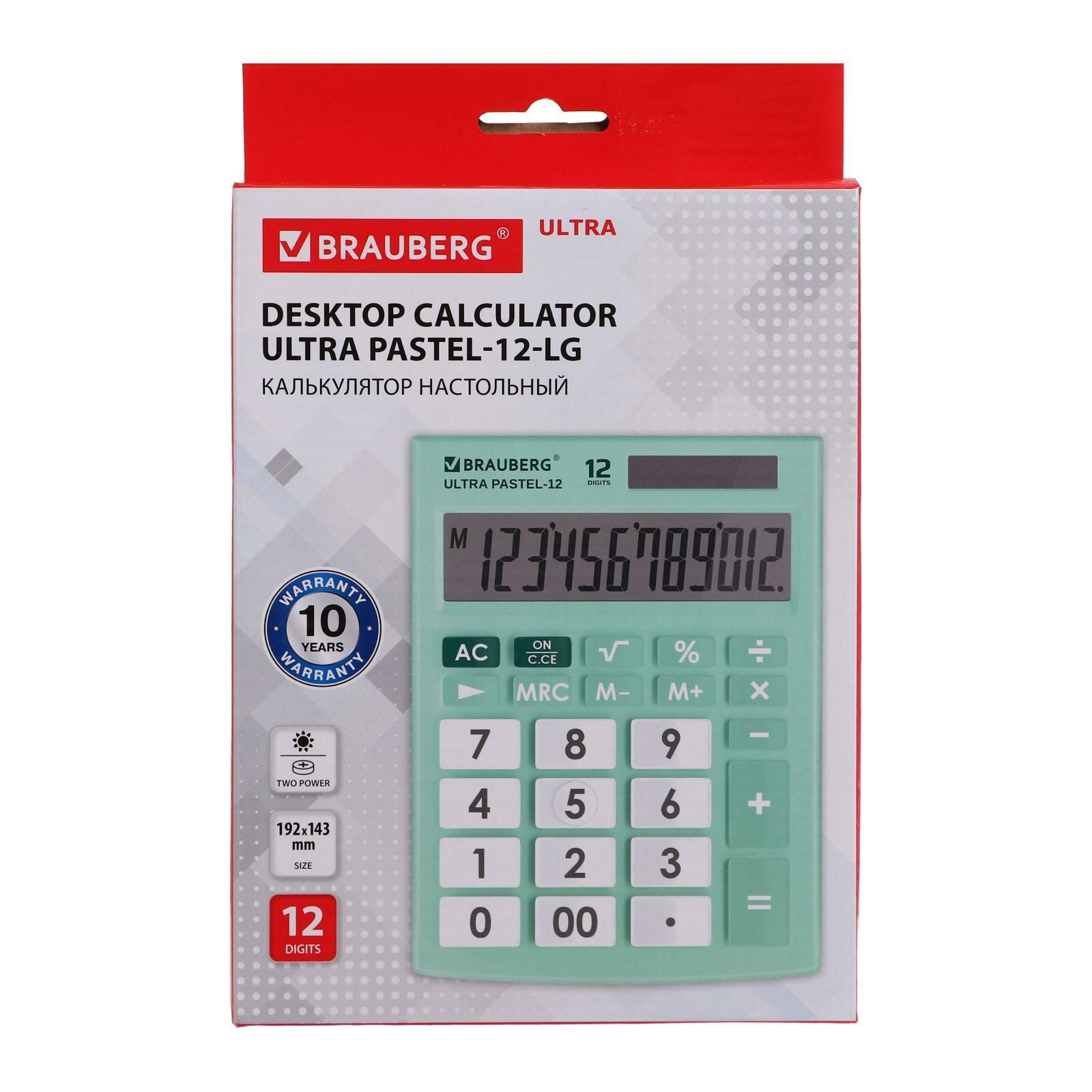 Купить Калькулятор настольный BRAUBERG ULTRA PASTEL-12-LG (192x143 мм), 12 разрядов, двойное питание, мятный, 250504