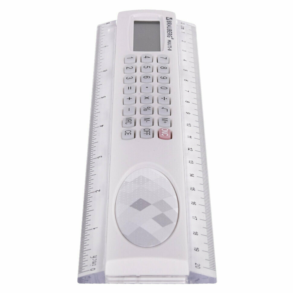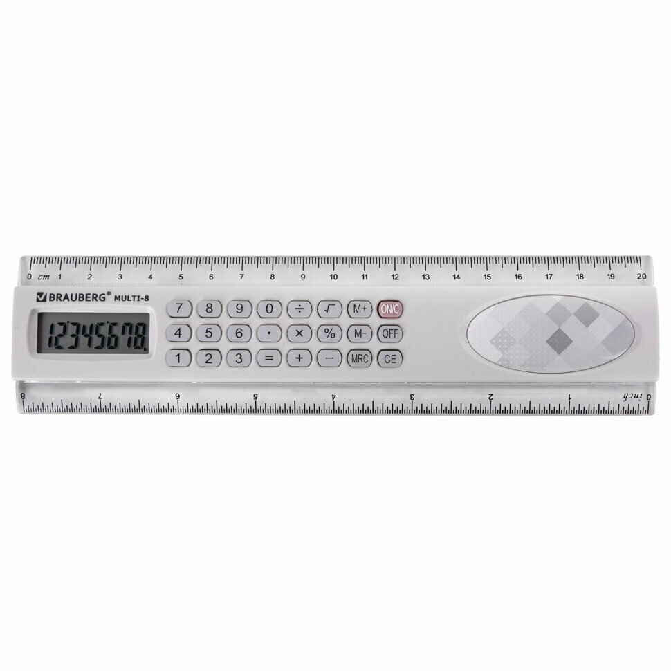Линейка с калькулятором 20 см BRAUBERG MULTI-8 (53x210 мм), 8 разрядов, 250540 В комплекте: 1шт.