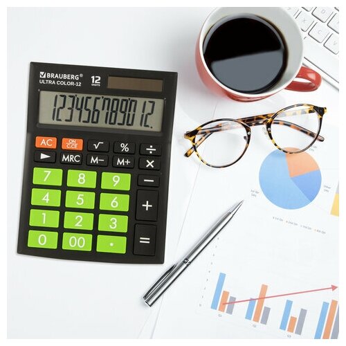 Калькулятор настольный Brauberg Ultra Color-12-BKLG, 12 разрядов, двойное питание, черно-салатовый (250498)