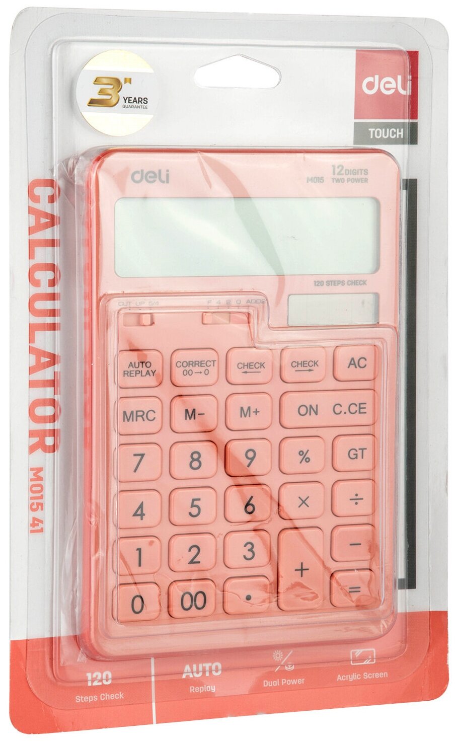 Калькулятор настольный Deli "Touch", красный, 12-разрядный (EM01541)